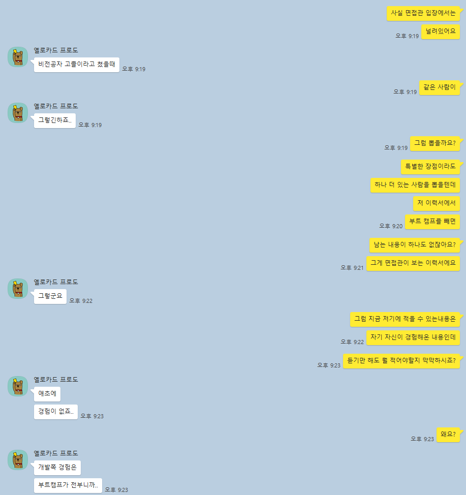 부트캠프 경력만 달랑 있는 이력서는 면접관 입장에서는 널려있는, 그냥 면접을 방해하는 이력서 중 하나일 뿐입니다.