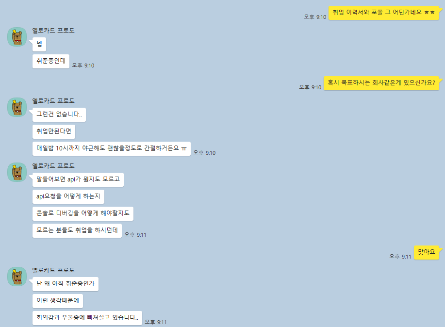 이번 사연자분은 "취업만 된다면 매일 야근을 해도 괜찮다!" 라고 하시는 정말 취업이 간절해보이는 분이셨습니다.