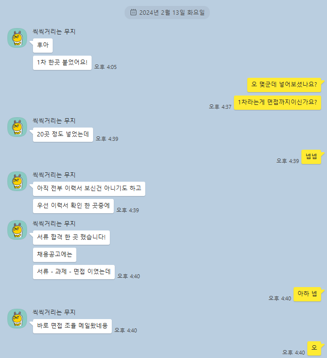 결국 설날인 금요일 새벽 1시까지 이력서 도와드렸는데, 설날이 끝나자 마자 바로 서류 합격하고 과제는 스킵까지 했다고 하시더라구요.