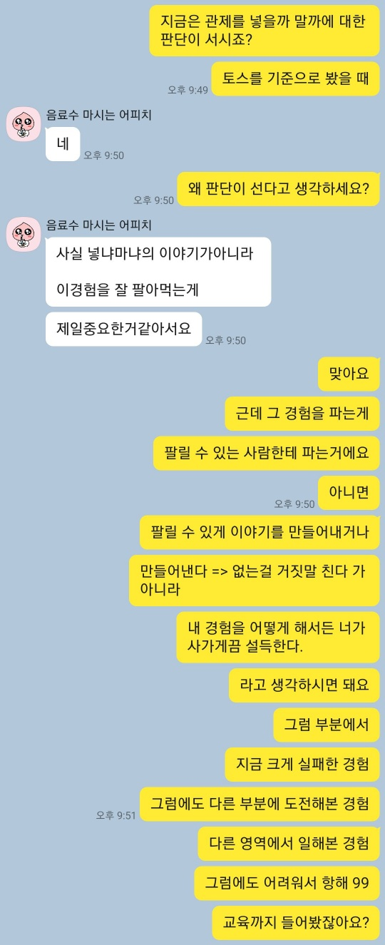하지만 정작 그러한 점은 부각되어있지 않은, 회사가 듣고싶어하는 이력서가 아닌 자기가 하고싶은 말을 적어놓은 듯한 이력서는데,
