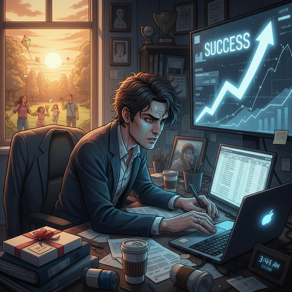 그는 원하는 목표를 위해 가족과의 저녁 식사, 아이의 학교 행사, 주말의 약속을 모두 뒤로한 채 일에만 몰두했습니다.
